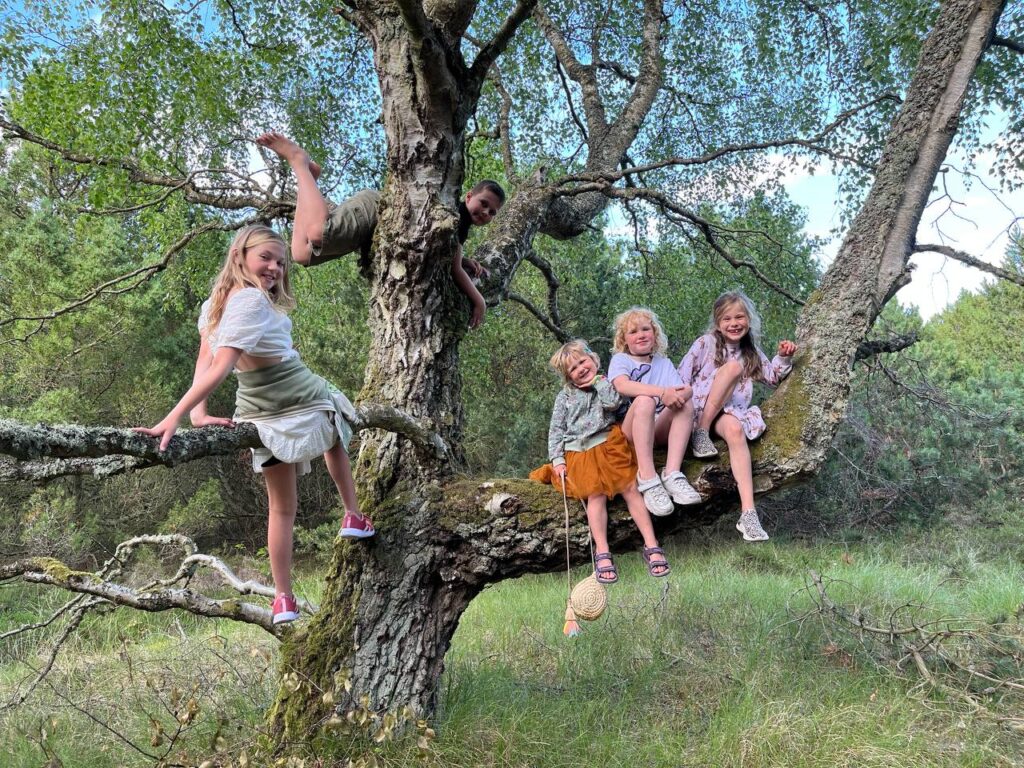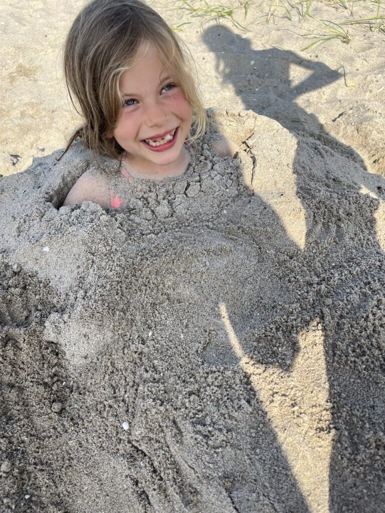 Første nye bekjentskap fikk vi på Stokken. Nikoline ble med på hyttebygging i skogen og hun er en overraskende tøff badeløve!