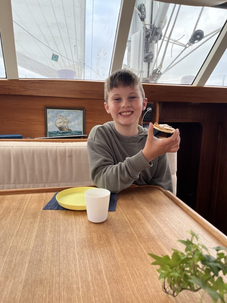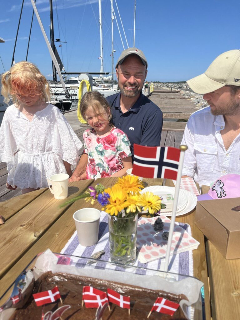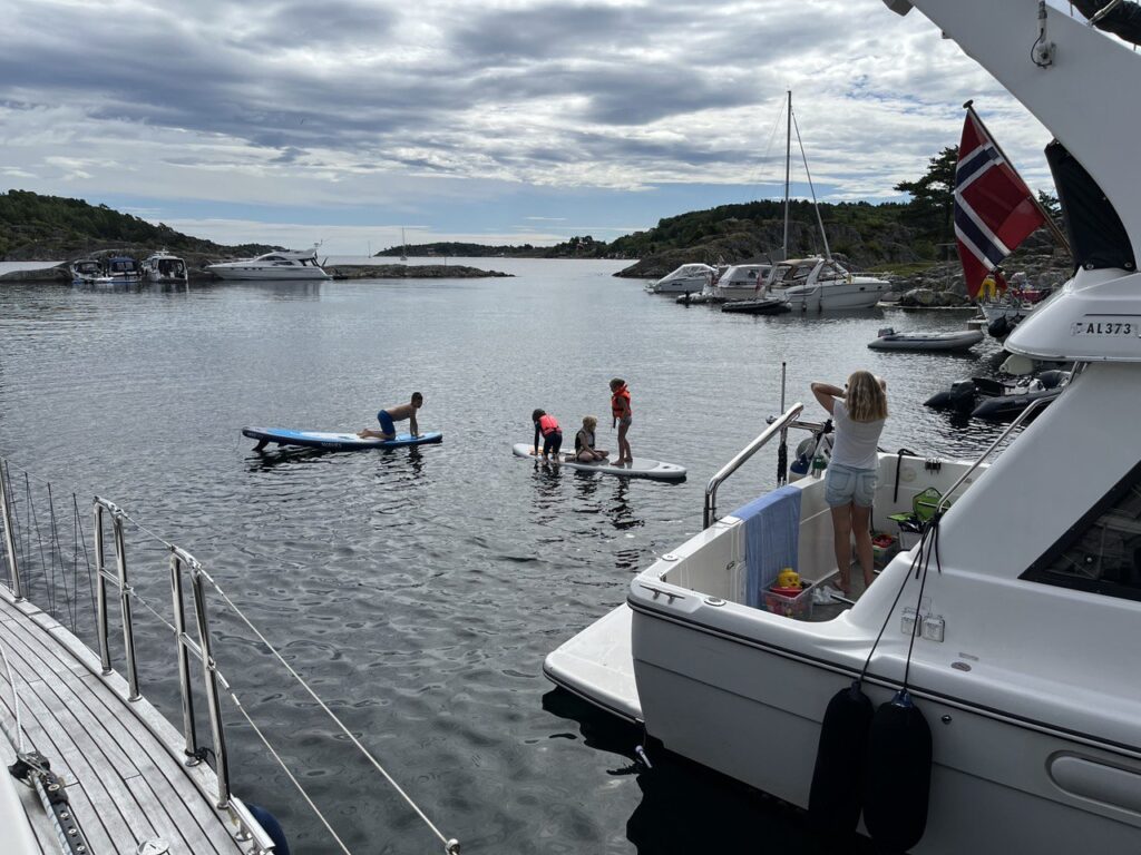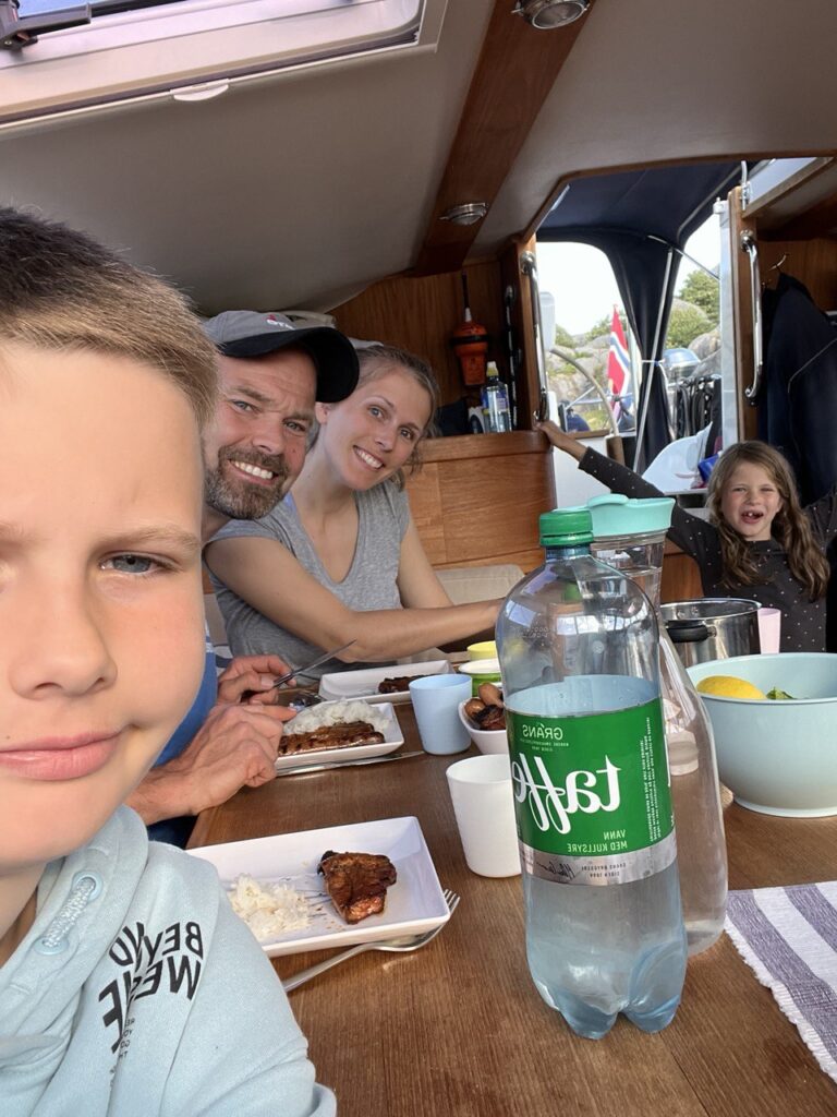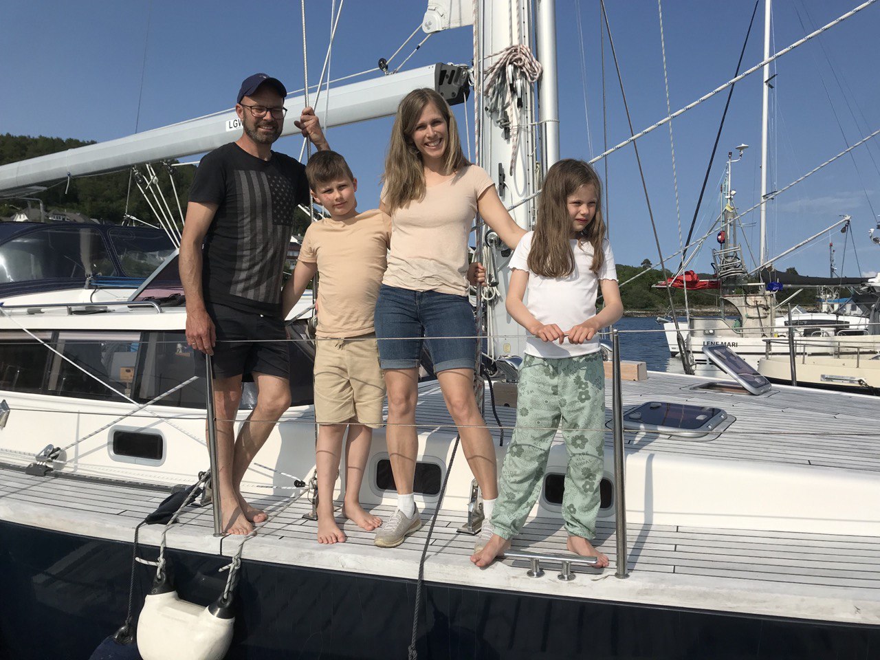 Familien Overå, ombord i Con Awa, er våre seilvenner, som har vært med helt fra Sunnmøre. Vi er så heldige å få gjøre denne reisen sammen! Barna har det så kjekt sammen og vi kan dele opplevelsene med gode venner.