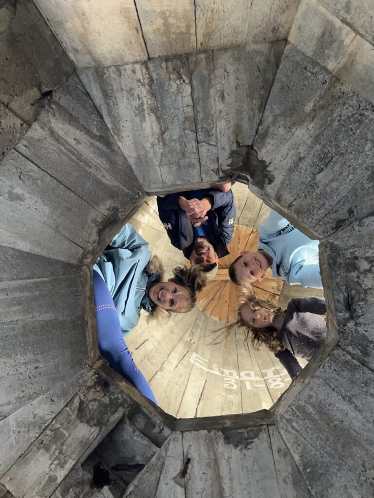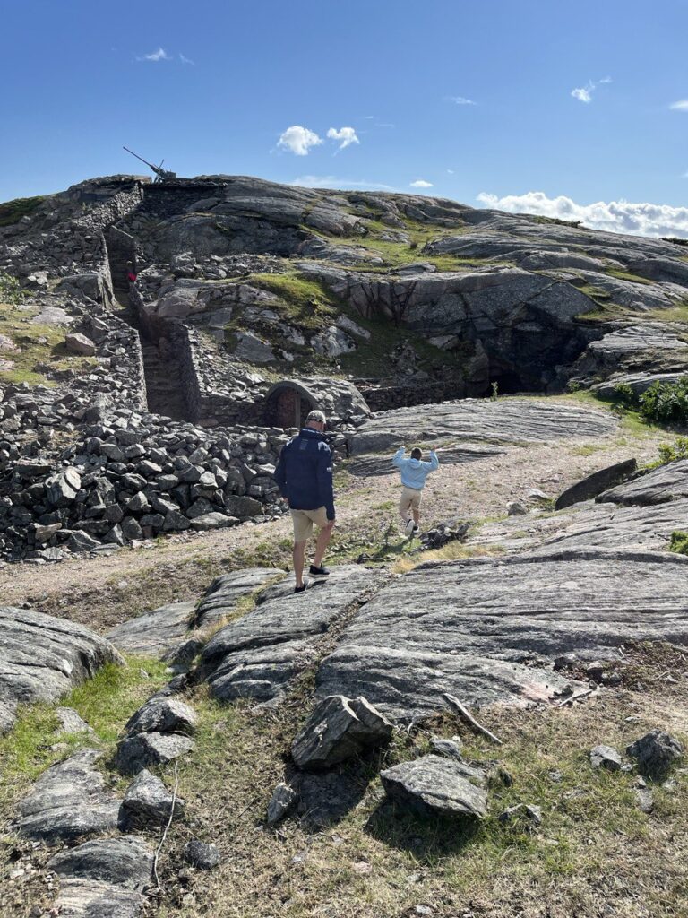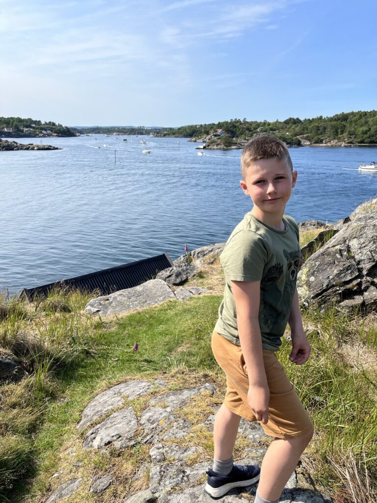 En av våre favorittplasser i Søgne er Olavssundet, hvor vi kan svaie og gå fine turer på land. Alfred og Karina ELSKER å utforske grottegangene i bunkerser fra krigen.