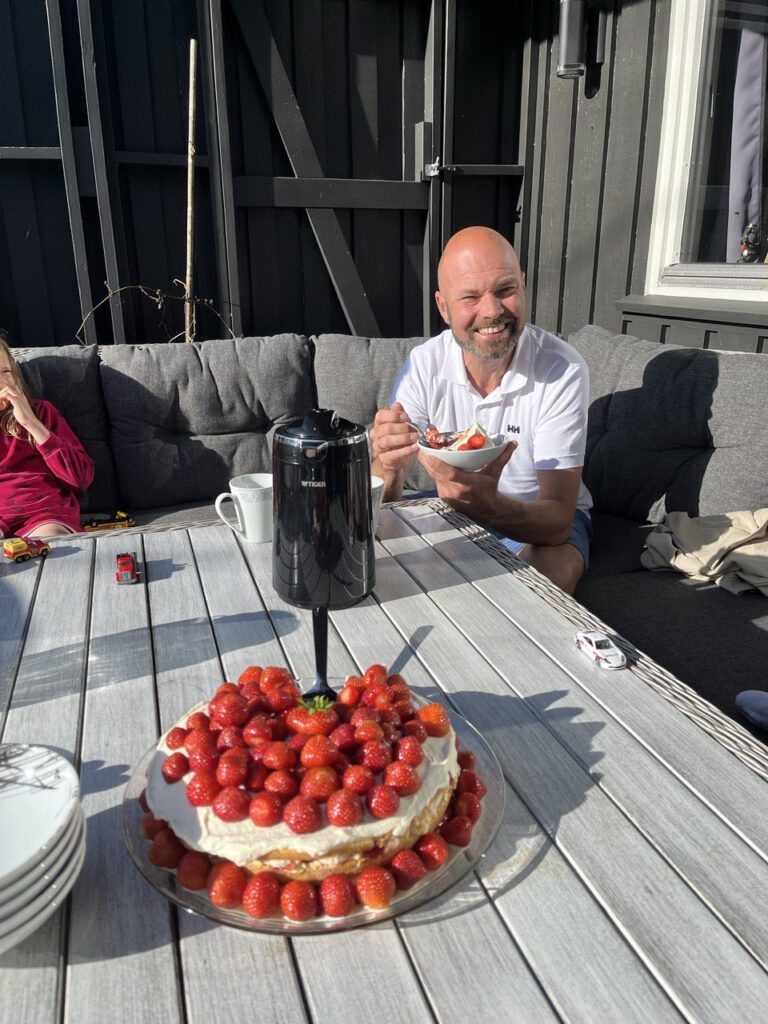 Svein Arild og Linda tok varmt imot oss på bursdagen til Lars. De sto for deilig middag og vi bygde en enkel bløtkake med et tårn av jordbær. Nam! Tinella og Constantin er verdens søteste små mennesker!
