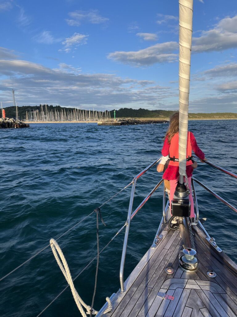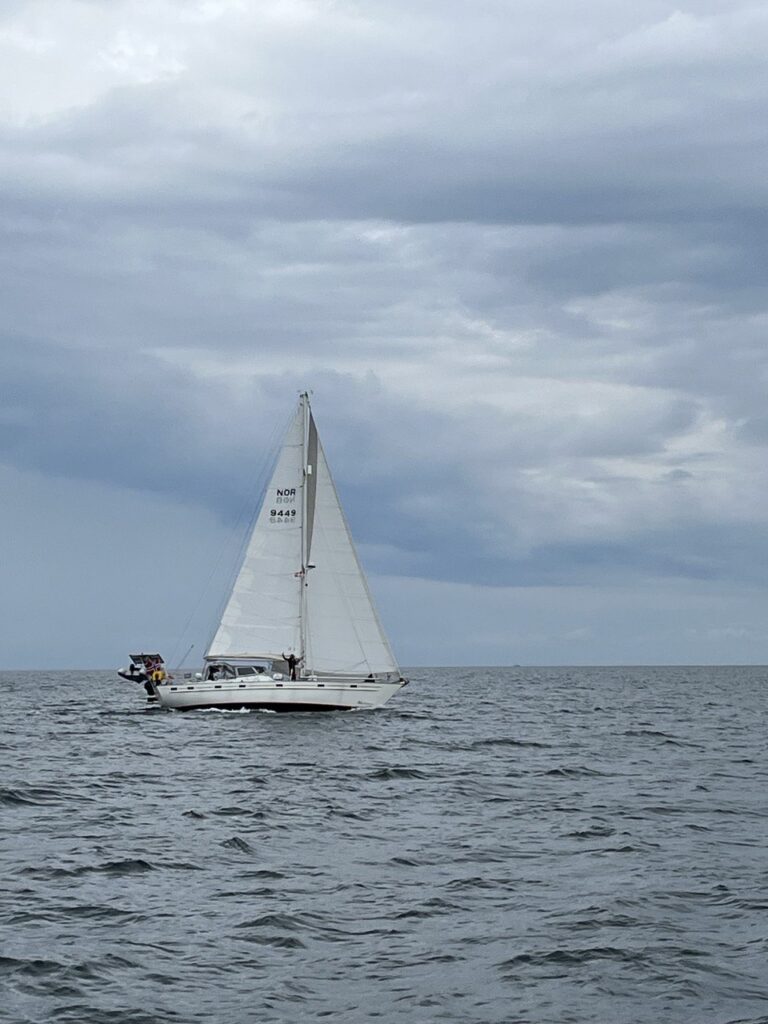 Etter å ha ventet lenge på grei nok vind til å krysse over til Danmark slang vi oss ut i 16 m/s og kastet oss gjennom bølgene. Vi seilte hele natta, fra solnedgang til soloppgang og ganske langt inn i neste dag. På grunn av mye vind endte vi opp på Anholt. Hvis du leser neste innlegg kan du høre hvor fantastisk det var å endelig komme i land, og til et så fint sted!