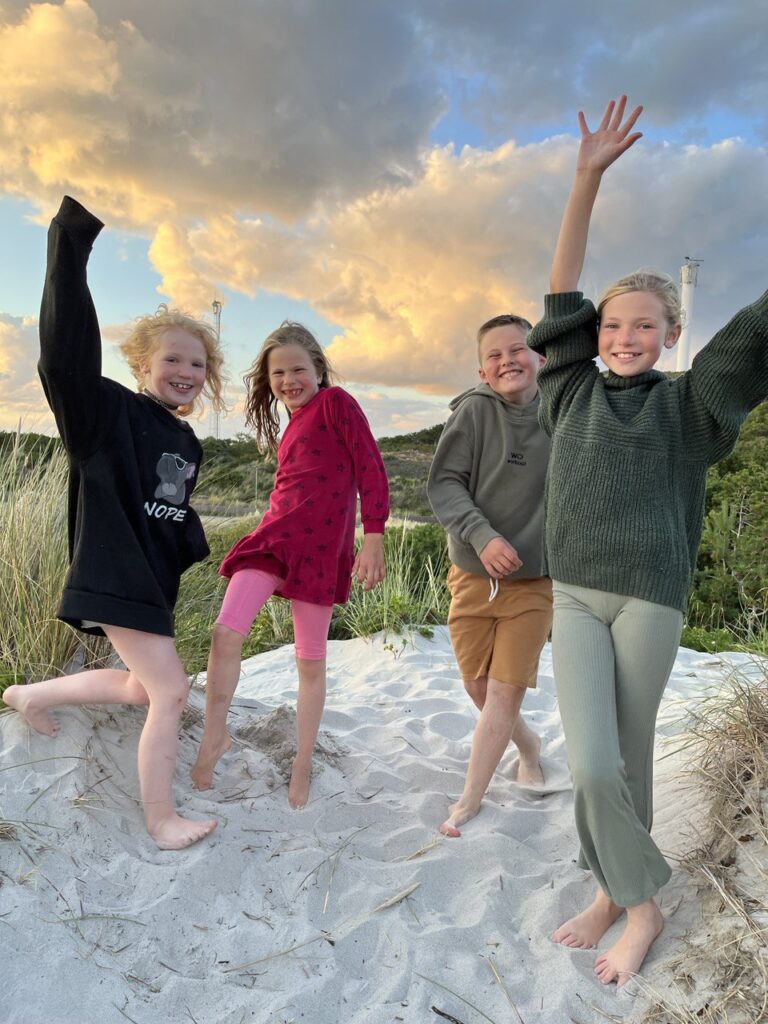ALLE badet! Både voksne og barn. Vi valgte den største stranda vi klarte å finne (hele øya er jo en eneste sandstrand). Det føltes som sommer! Barna fikk også prøve å bade i store bølger. Dessverre var været litt kjølig og vinden sto fremdeles ganske sterkt, så vi droppa å leie sykler.